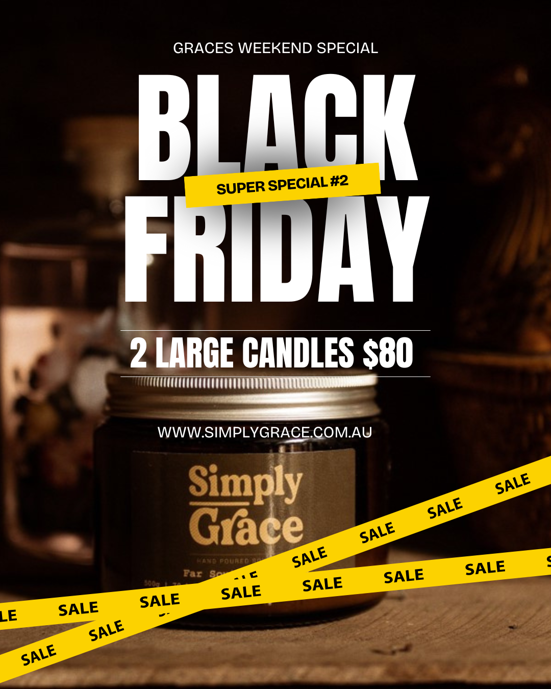 "I have 3 wonderful candles made by Simply Grace in my home. the scent doesn't lessen after the initial burn. Even when they aren't alight the beautiful fragrance fills the air..." -Shona / Candelo NSW