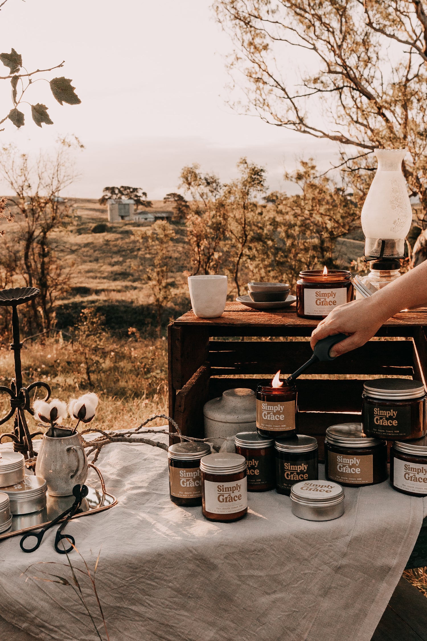 "I have 3 wonderful candles made by Simply Grace in my home. the scent doesn't lessen after the initial burn. Even when they aren't alight the beautiful fragrance fills the air..." -Shona / Candelo NSW